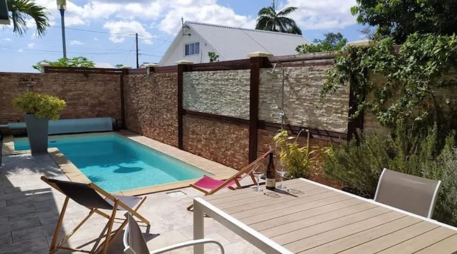Petite piscine privée également (chauffée en saison fraîche, environ 27 degrés), sans vis-à-vis.