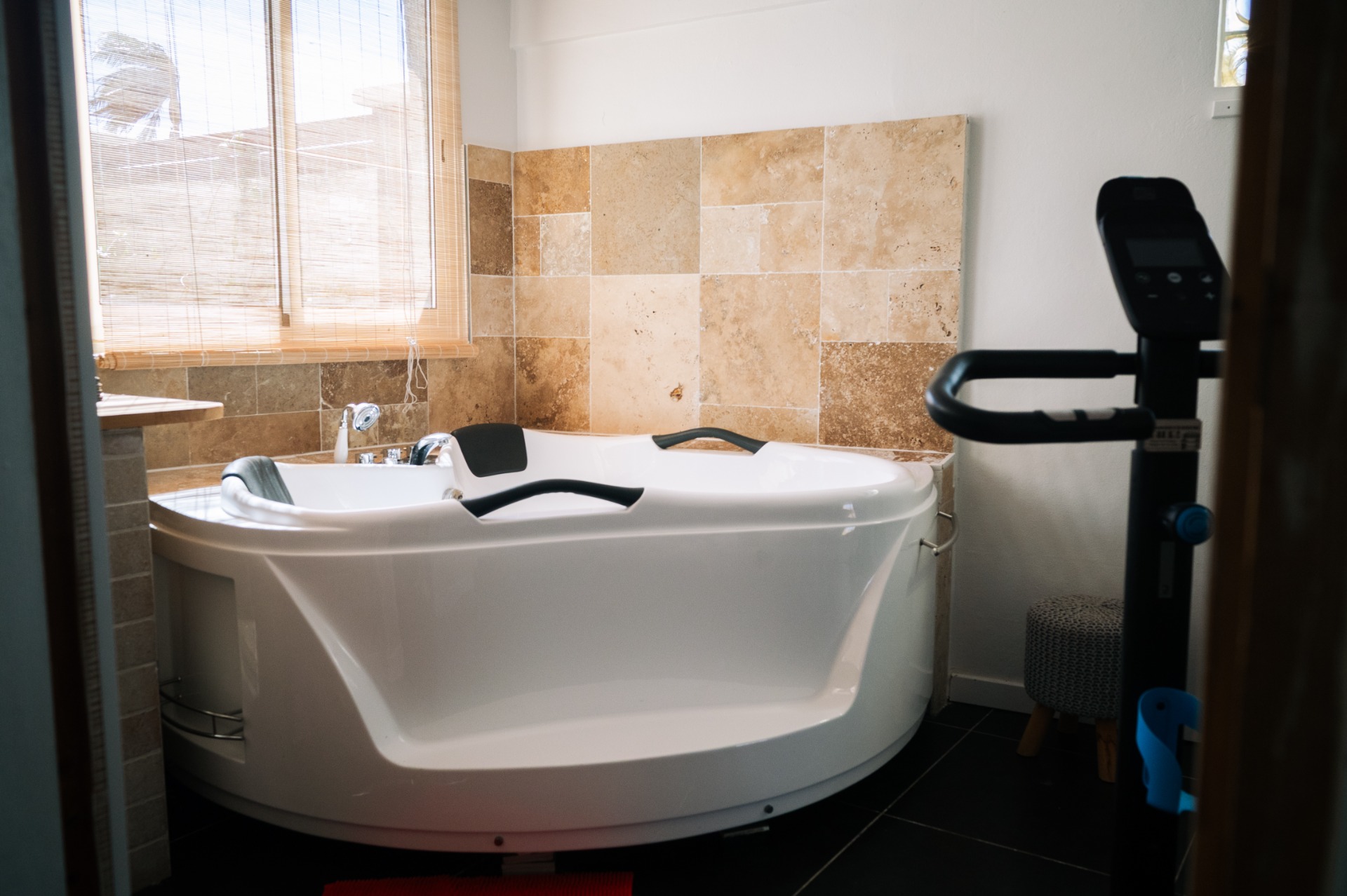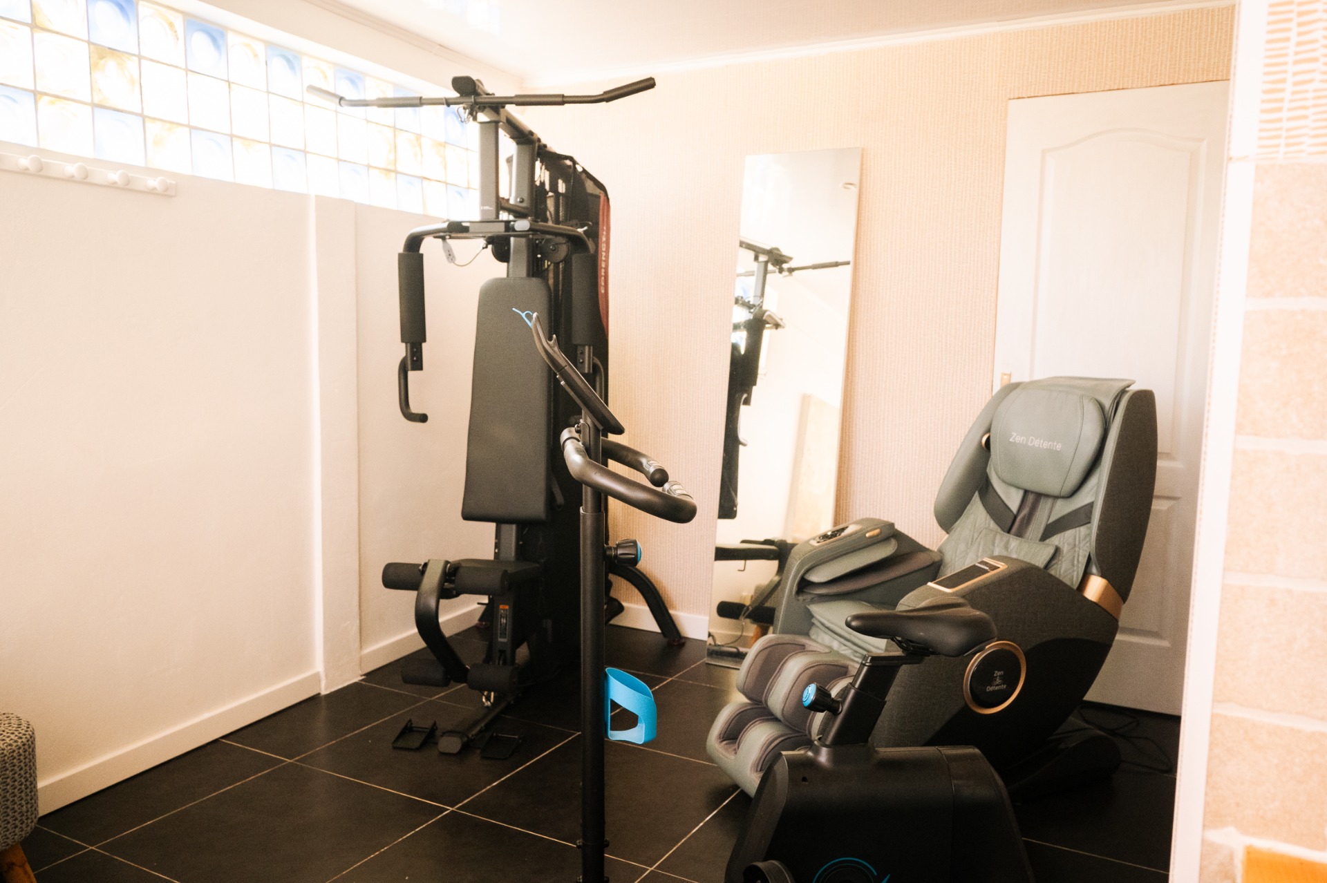- En option : salle détente et sport (appareil de musculation, vélo d'intérieur, fauteuil massant, baignoire à remous)