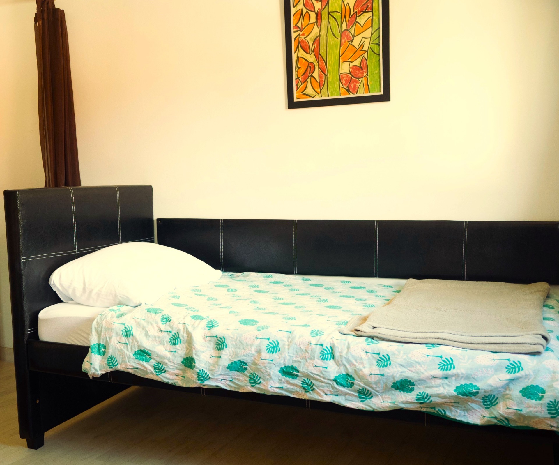 - Une chambre climatisée avec 1 lit double (140) et 1 lit simple. Possibilité d'ajouter un lit bébé sur demande.